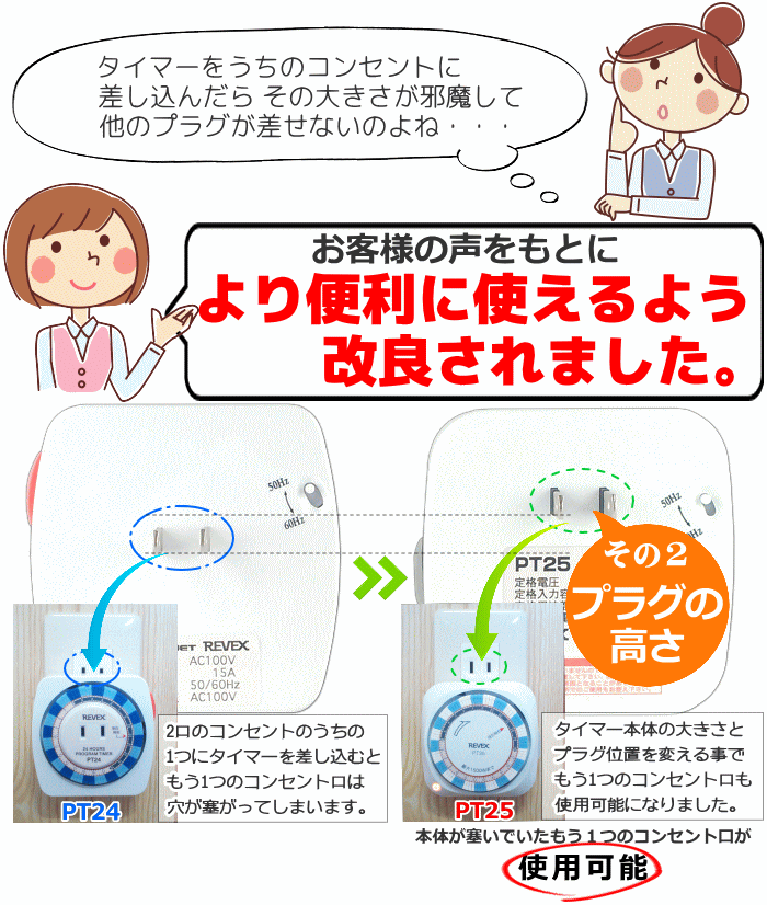 【送料無料】[電源タイマー] コンセント タイマー 24時間プログラムタイマー2(ツー)PT25[節電 エコタイマー アクアタイマー ポット オン オフ 停止 開始 ON OFF タイムスイッチ 電源 タイマー 電気 照明タイマーに] [REVEX リーベックス]